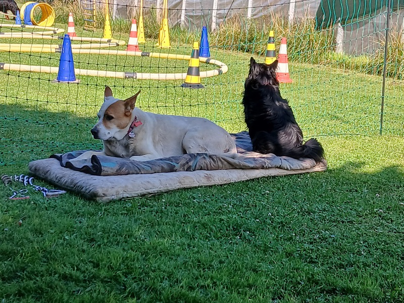 Mein in zwischen doch recht hohes Alter hat auch so seine Vorteile. (grins) Wenn der Unterricht läuft und die meisten Hunde an der Leine sein müssen, damit sie zwischendurch keinen Blödsinn machen, darf ich auf meiner VIP Lounge Platz nehmen.