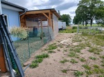 Am nächsten Tag ging es auch schon los. Als erstes wurde die Wand zum Carport gebaut, dann ein vernünftiger Zaun für den Auslauf. Der nächste Schritt waren die Lichtplatten an der Voliere. So konnten die Mädels nun auch schön in den Auslauf, wären ihr Stall gebaut wurde.