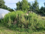 Kurz nach meinem Geburtstag meldete sich unser Zimmermann und sagte, dass er unverhofft jetzt Zeit hätte, um den Stall zu bauen. Wir hatten erst mit August/September gerechnet. So räumte Frauchen im Carport die Ecke hinter der Voliere frei, wo der kleine Stall hinkommen sollte.