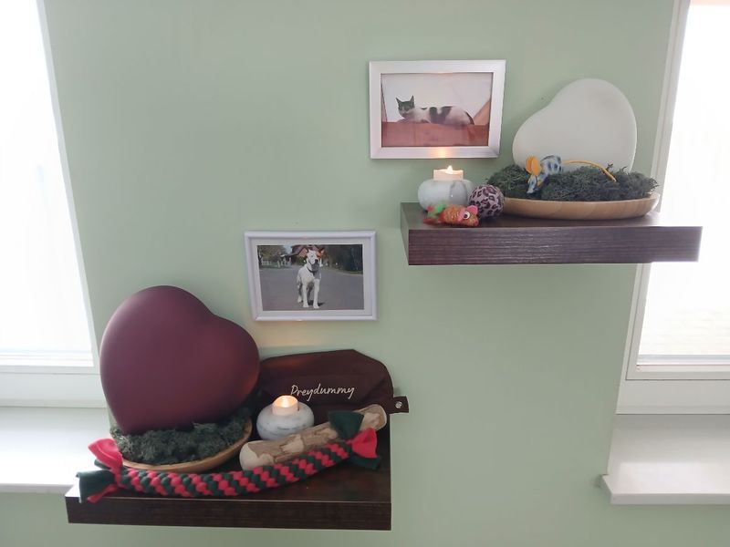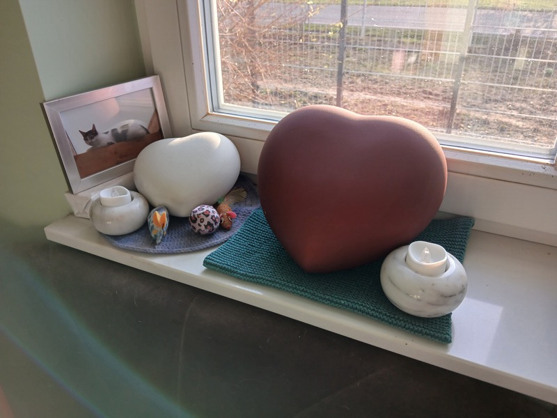 Felli und ich haben ihn mit nach Hause genommen, wo Felli in Ruhe von ihm Abschied nehmen konnte. Zwei Stunden später waren wir mit ihm im Krematorium. Nach fünf Tage durften wir ihn wieder nach Hause holen.
